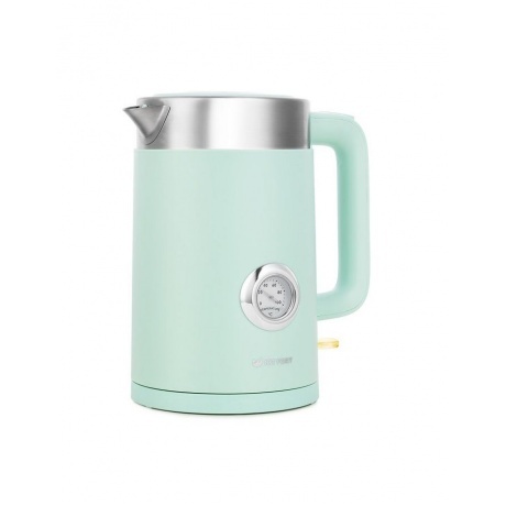 До сих пор не могу налюбоваться его красотой и аккуратностью. В мою оливковую кухню невероятно вписывается своим тонким мятным цветом. Очень удобный носик, не проливается. Большая классная ручка, удобно держать. Шикарная крышка, которая без нажатия на кнопку никогда сама не откроется. Стальной ободок дополняет сам чайник и вид его становится намного стильнее. Термометр работает и безумно удобно для того, чтобы отключить чайник для заваривания зеленого чая или просто подогрева до нужной температуры. НЕВЕРОЯТНО тихий!!! Такого тихого чайника я никогда не встречала! первый раз когда кипятила воду даже засомневалась работает ли он. Очень тихий, совсем не заметный на фоне общения или разговора по телефону, например.