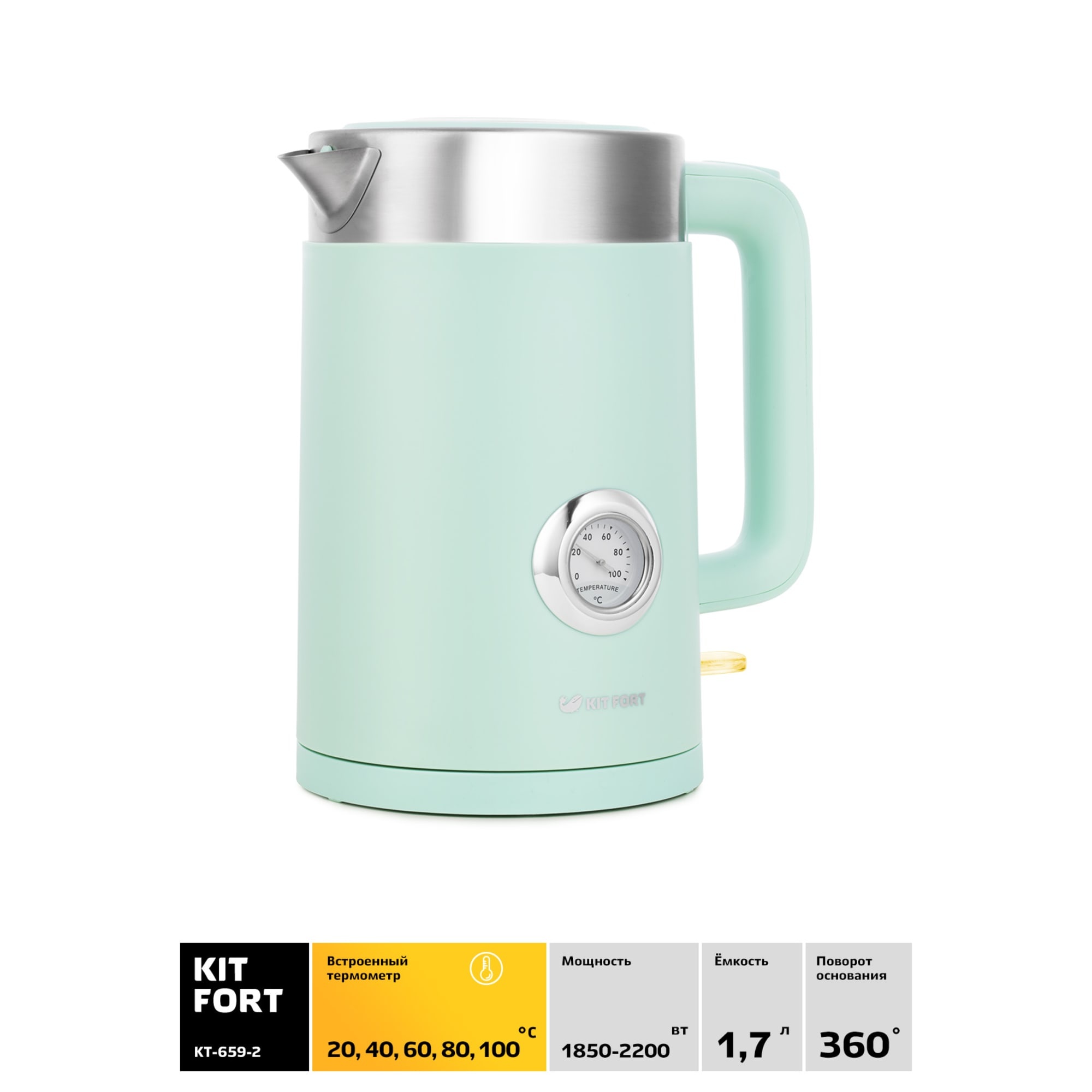 Описание товара Чайник электрический Kitfort КТ-659-2 зеленый