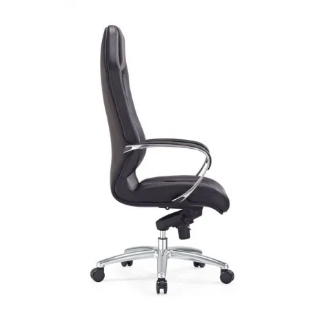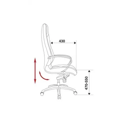 Регулировка высоты (газлифт). Механизм со смещенной осью качания с регулировкой под вес и фиксацией в нескольких положениях. Подлокотники металлические (полированный алюминий) с кожаными накладками. Крестовина металлическая (полированный алюминий). Ограничение по весу: 120 кг. Материал обивки: натуральная кожа (лицевая часть, подлокотники), искусственная кожа