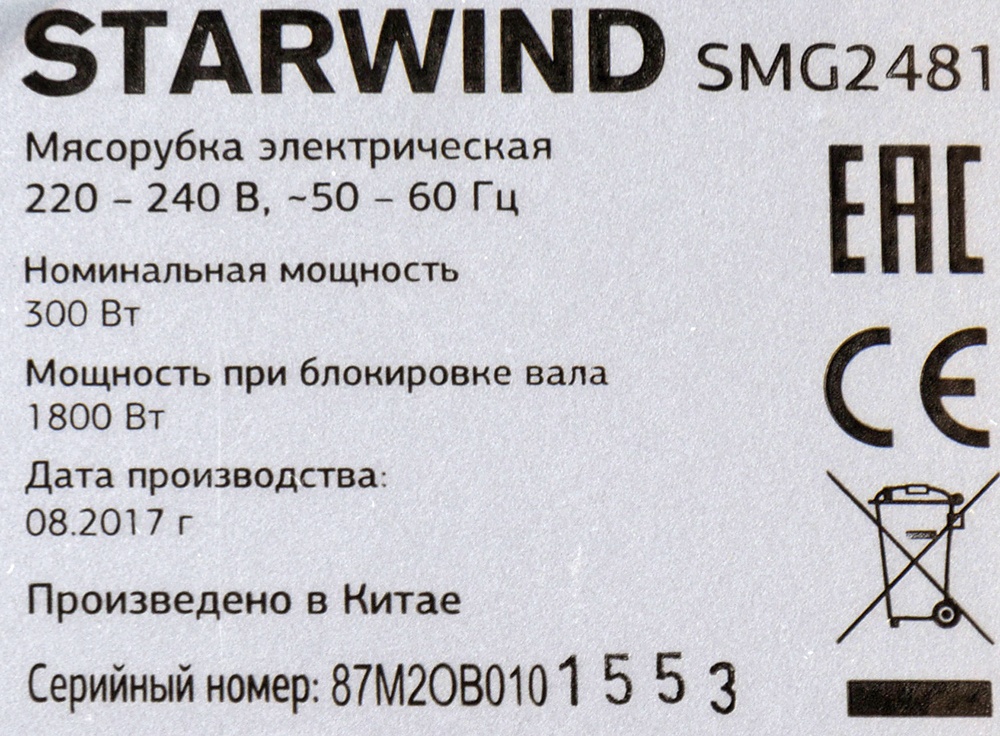 Отзывы о товаре Мясорубка Starwind SMG2481 1800Вт белый/черный