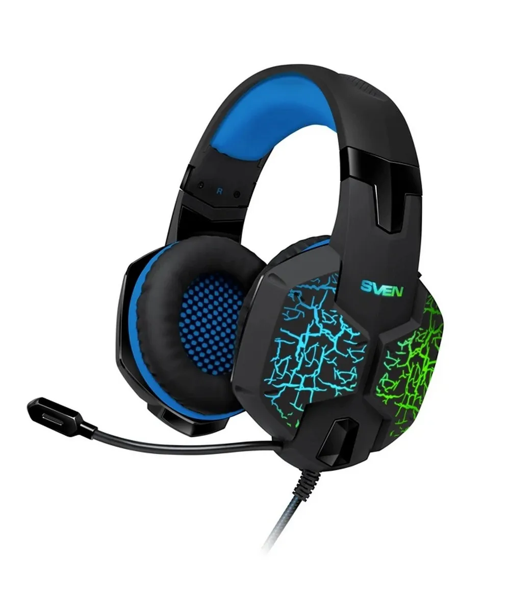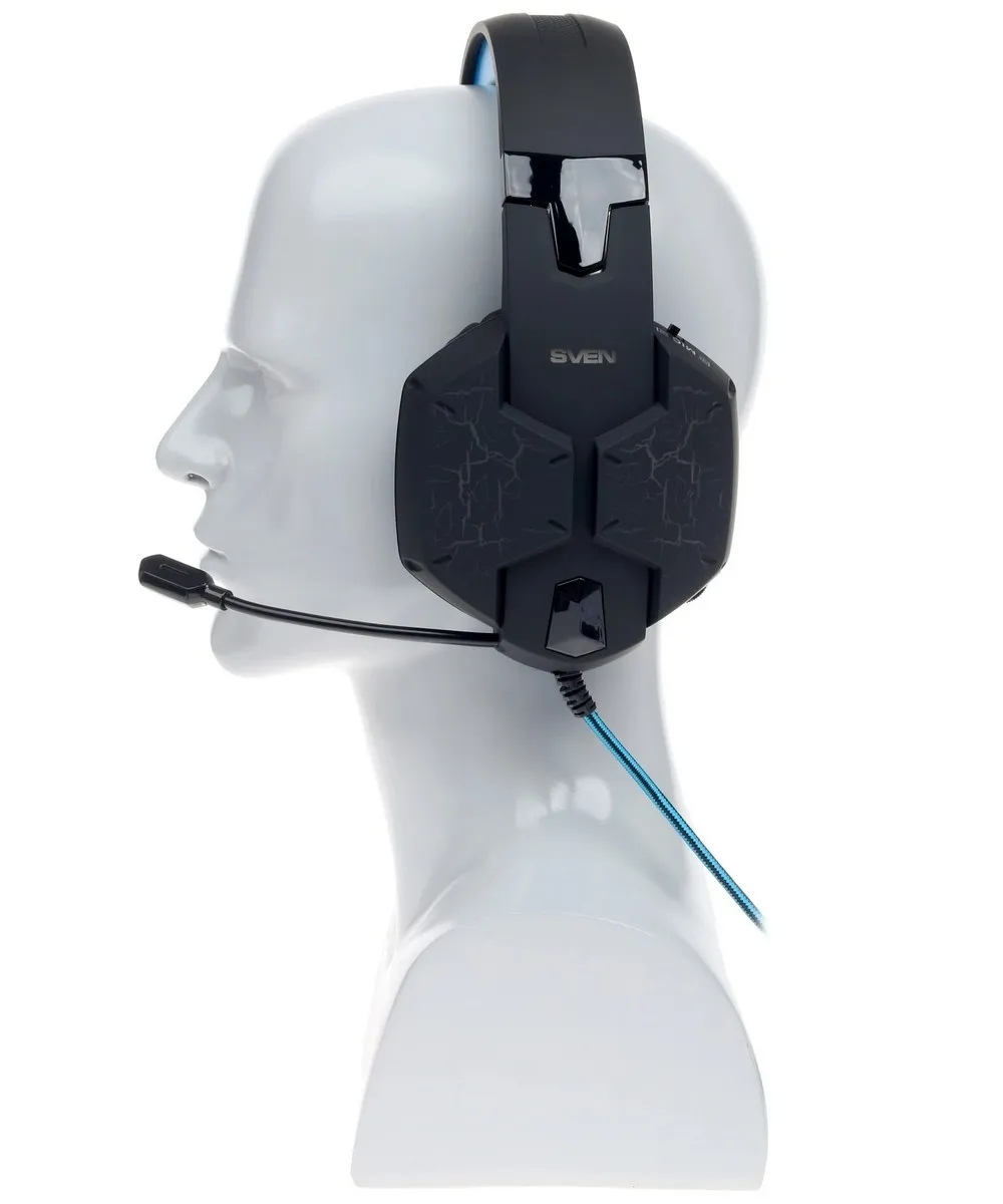 Основной цвет наушников Sven AP-U980MV – черный, он совмещается с синими элементами. Создана динамическая подсветка, она придает эффектный дизайн. Изящный внешний вид понравится владельцам.