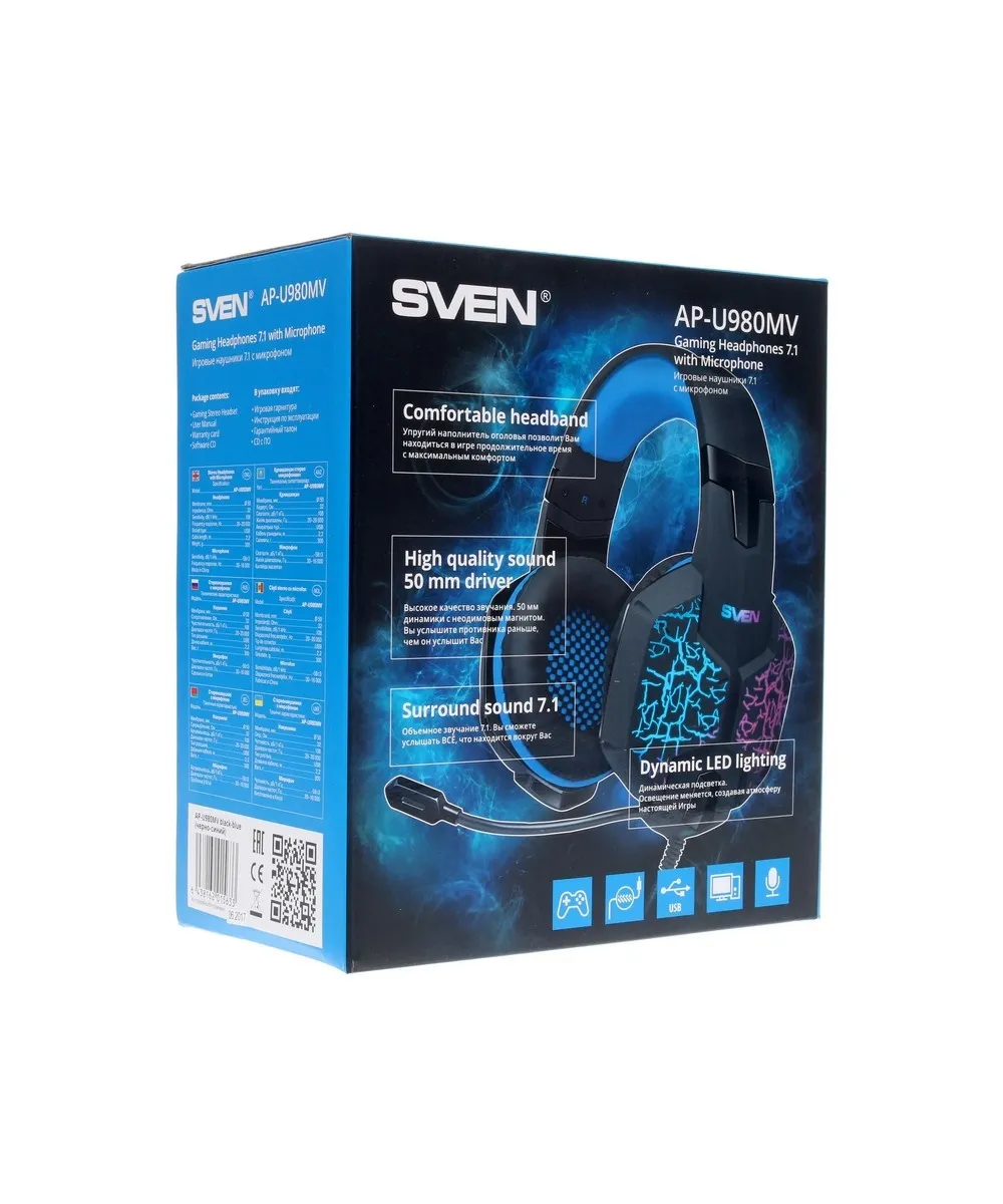 Наушники Sven AP-U980MV – отличное геймерское устройство. При их создании было реализовано объемное звучание в формате 7.1. Удалось повысить качество воспроизведения и получать еще больше удовольствия от использования.