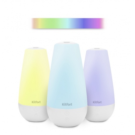 Ультразвуковой увлажнитель - ароматизатор воздуха Kitfort KT-2806 увлажняет воздух в помещении, создавая хороший микроклимат для проживания людей. Может использоваться в помещениях и квартирах, площадь которых не превышает 15–20 м?. Залейте чистую холодную воду в резервуар, добавьте прямо в основание увлажнителя 10-15 капель любимого эфирного масла на водной основе. И наслаждайтесь любимым ароматом! Увлажнитель прост в использовании - с помощью кнопок на передней панели можно установить интенсивность тумана, включить или выключить подсветку в корпусе. По мере испарения воды увлажнитель автоматически отключится. Корпус увлажнителя – ароматизатора подсвечивается изнутри разными цветами, его можно использовать в ночное время в качестве ночника. При помощи спокойных приятных цветов создаст в доме уютную атмосферу. Легко разбирается и быстро моется! Имеет съёмный блок питания, поэтому хранить его будет ещё проще и удобнее!