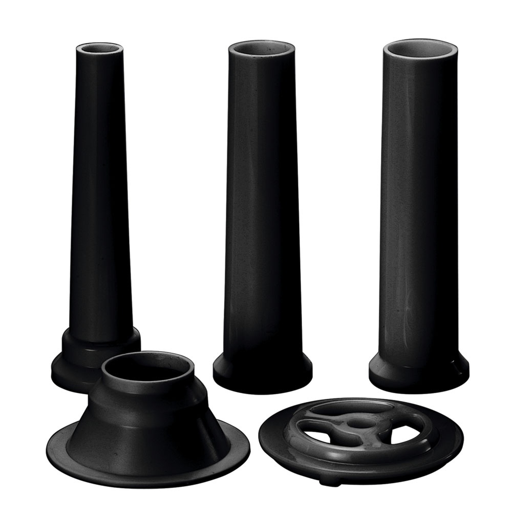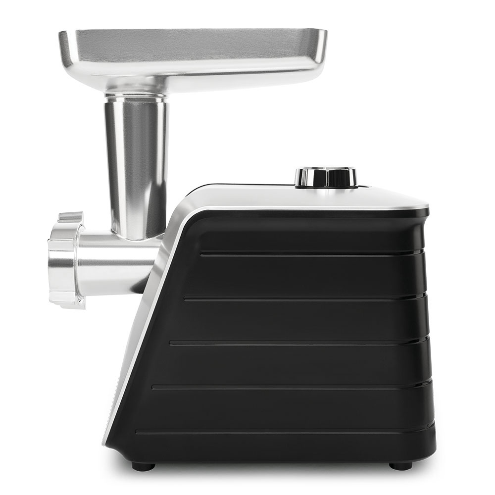 Производительность: до 2.7 кг фарша / мин. Функция реверса. Нескользящие ножки. В комплекте: 2 диска из нержавеющей стали (5 мм, 7 мм), металлический лоток для мяса, пластиковый толкатель, 3 насадки для приготовления колбас разных диаметров, насадка для кеббе, специальное приспособление для быстрой и легкой очистки, овощерезка (3 барабана: крупная терка, мелкая терка для шинкования)‚ лопатка для овощерезки.