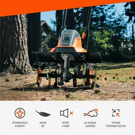 Электрический культиватор PATRIOT ELEKTRA 1500 460302117 - отличный вариант для садоводов и владельцев небольших участков. Двигатель 1500 Вт обеспечивает большую скорость вращения фрез. Вес культиватора всего 10.5 кг. Это позволяет справится с агрегатом даже новичку. Отсутствие выхлопных газов позволяет проводить работы в закрытых парниках.