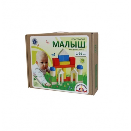 Родители могут предложить ребенку собрать башню из фигурок одно цвета или подобрать одинаковые детальки по размеру. Более старшим детям можно проговаривать как называют те или иные строительные фигуры, чтобы они запомнили новые слова и использовали в своей речи. "Малыш" развивает аналитическое мышление, мелкую моторику, фантазию, внимание, координацию, воображение.Конструктор выполнен из экологически безопасных материалов – дерево (сосна, ель, береза, липа).