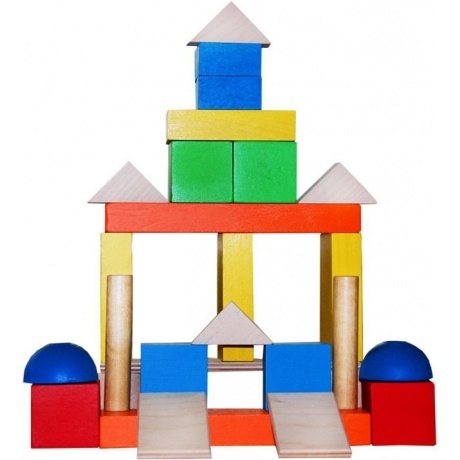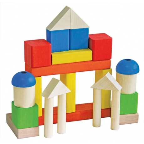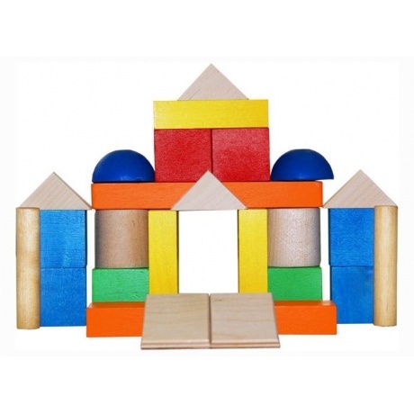 Набор познакомит ребят с разными формами – кубики, кирпичики, призмы, пластины, цилиндры, различными цветами.