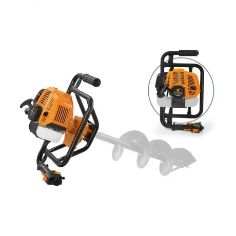 Мотобур Carver AG-62/000 легко справляется с проделыванием отверстий во льду и в почве. Инструмент может использоваться в самых сложных климатических условиях. Глубина бурения с его использованием может достигать 1 м. Двухтактный двигатель инструмента обладает мощностью 2200 Вт. Он способен совершать до 7500 об/мин. Работает мотобур Carver AG-62/000 от бензина. От случайного включения он оснащен блокировкой.