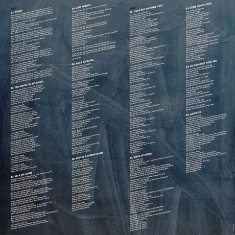 Rehab, You Know I'm No Good, Me & Mr Jones, Just Friends, Back To Black, Love Is A Losing Game, Tears Dry On Their Own, Wake Up Alone, Some Unholy War, He Can Only Hold Her, Addicted