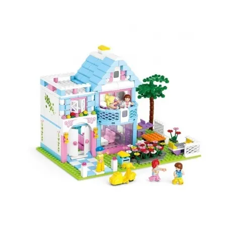 Конструктор Розовая мечта: Вилла включает в себя 539 ярких деталей и фигурок, из которых можно построить двухэтажный домик с балконом, обустроить лужайку с клумбой, барбекю и детской игровой площадкой. Когда вилла будет готова, туда можно заселить игрушечную семью, состоящую из мамы, папы и троих детей. В наборе имеется много функциональных деталей, представлено множество бытовых мелочей. Ребенок сможет придумать массу сюжетных линий, играя с данным конструктором.
