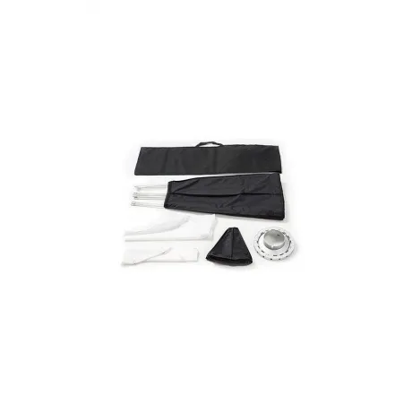 Софтбокс — модификатор света, позволяющий получить мягкий светотеневой рисунок на снимаемом объекте. Предназначен для использования на студийных вспышках в качестве заполняющего, а так же моделирующего источников света. Параболический рефлектор обеспечивает идеально ровный световой поток. Закрытая конструкция исключает паразитные блики и потери светового потока. Отражающая серебристая поверхность обеспечивает равномерное распределение света внутри софтбокса, белые полупрозрачные рассеиватели делают свет более мягким. Конструкция устойчива к поломкам, без проблем работает в ветренную погоду. В облегченная версии используются направляющие из фибергласса.