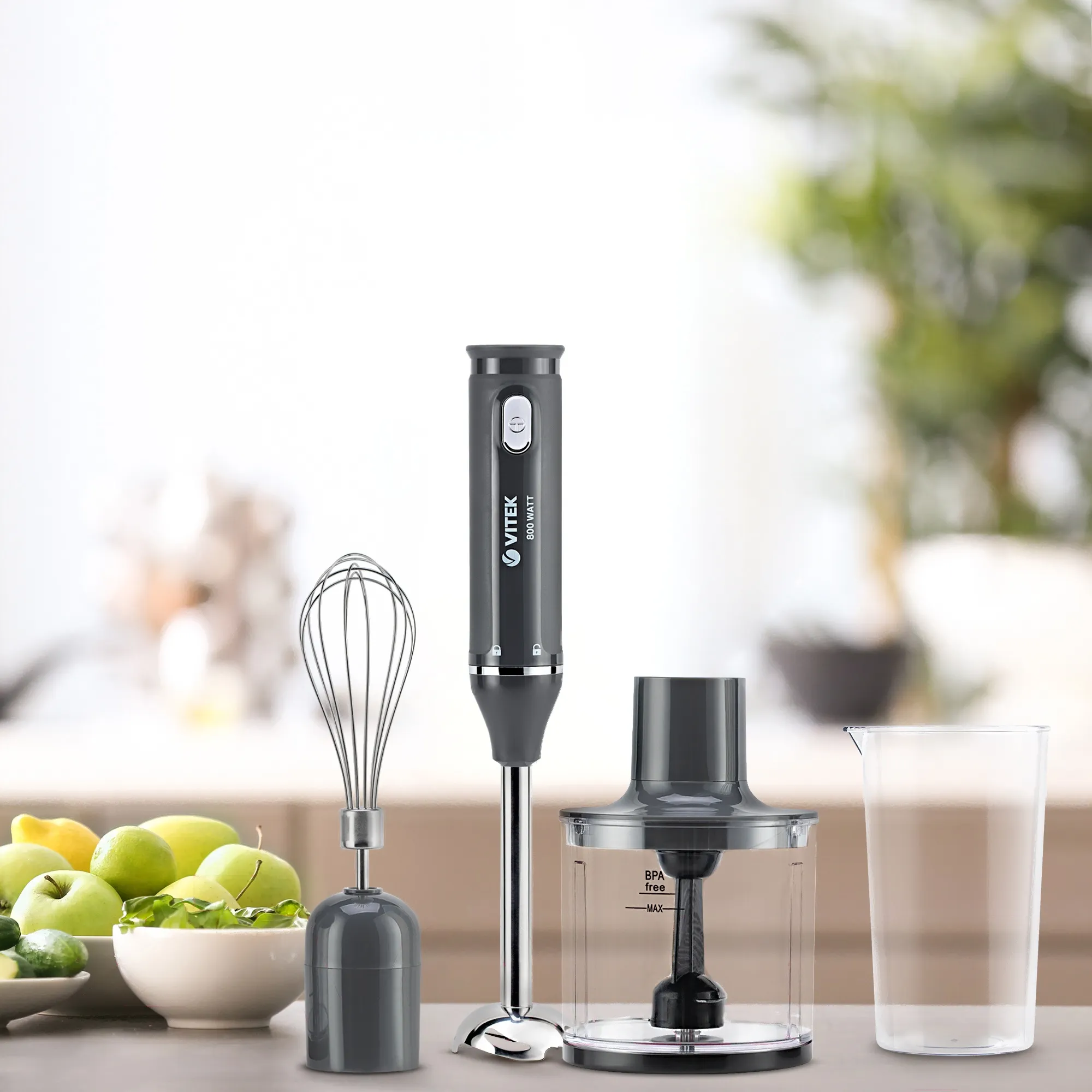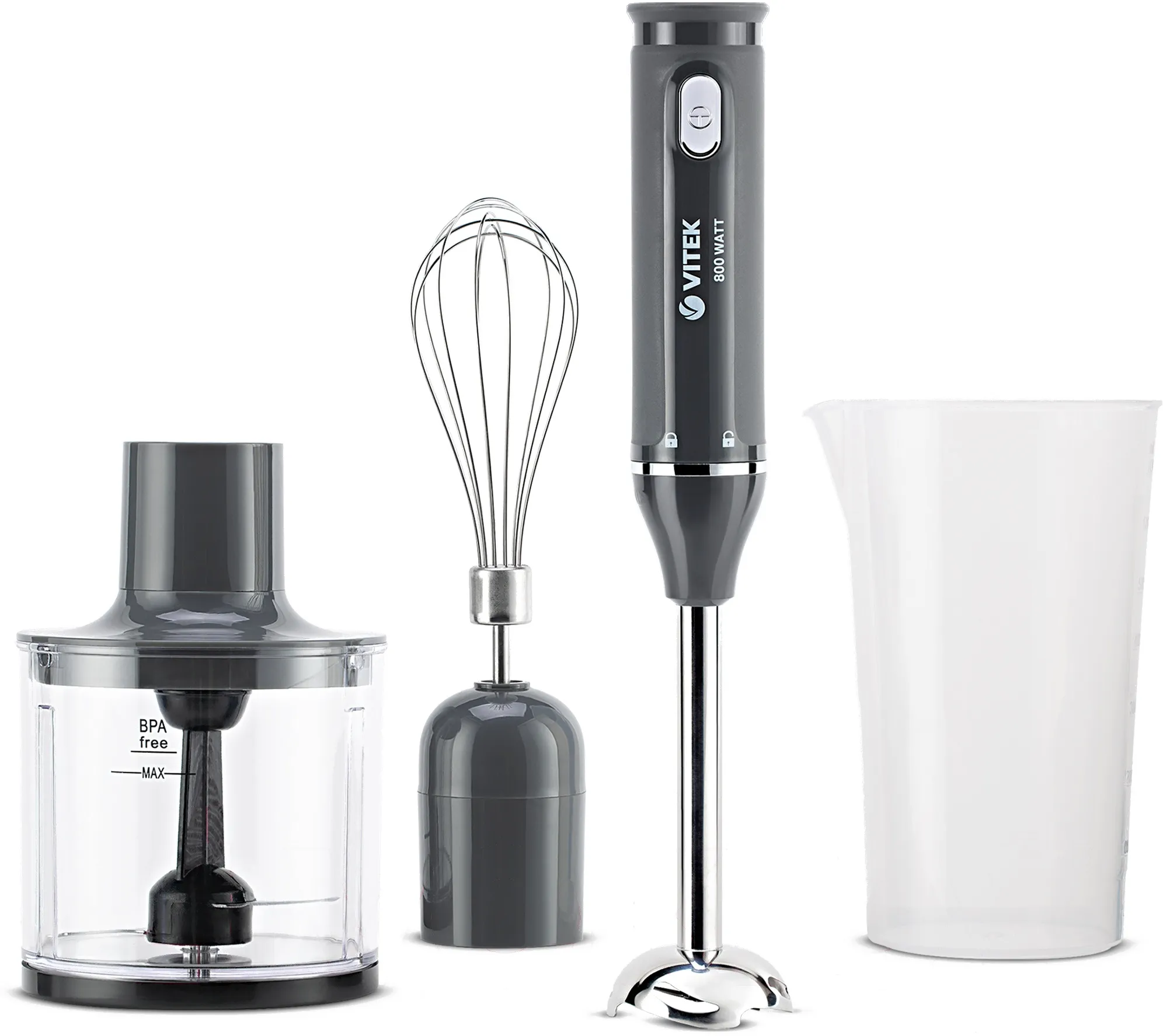 Любите нежные супы-пюре и смузи? Приготовьте их с помощью погружного блендера VITEK VT-8526 с одним скоростным режимом (максимальная мощность 800 Вт). В комплект с прибором входят стакан для смешивания емкостью 700 мл и чаша для измельчения (450 мл). Рабочая часть блендера, а также насадки для взбивания и лезвия изготовлены из высококачественной нержавеющей стали.