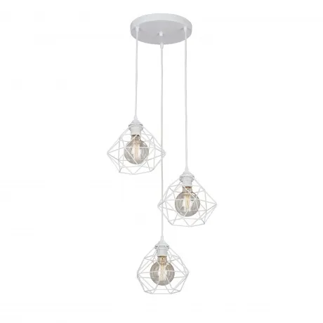 Подвесной светильник будет отлично смотреться в гостиной, кухне, офисе в стиле лофт. Светильник имеет 3 плафона из белого металла с цоколем 3xE27. Питание от сети 220V, общая максимальная мощность 120W позволяет осветить площадь до 6 кв. м.