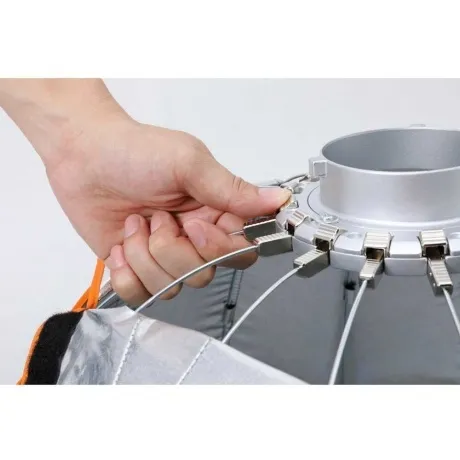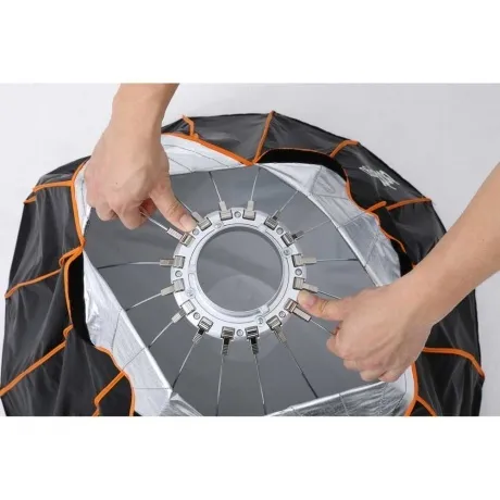 Быстроскладной / быстрораскладной параболический 16-спицевый софтбокс с диаметром описывающей окружности 120 см и глубиной 70 см. Может использоваться совместно с импульсными вспышками и светодиодными осветителями с байонетом Bowens, чтобы формировать мягкий равномерный световой поток с четким ровным краем светового пятна. Такое освещение придает объем и детализацию объекту съемки, а почти круглая форма насадки создает красивый круглый блик в глазах или на блестящей поверхности. Благодаря своей конструкции, Godox QR-P подойдёт фотографам и видеографам, часто работающим на выезде или в небольших студиях, где нет возможности хранить громоздкое оборудование.