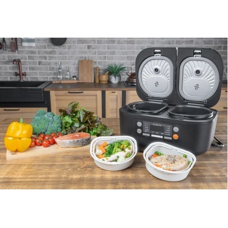 Приготовить 4 блюда одновременно? – С мультиваркой GARLYN MR-Duo 5 это легко! Вкусная и полезная пища, приготовленная различными способами в одном компактном устройстве.