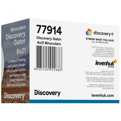 Discovery Channel (Дискавери ченэл) – всемирно известный научно-популярный телеканал о науке, технологиях, исследованиях и приключениях. Захватывающее сочетание историй разных жанров помогает взглянуть под разными углами на людей, места, организации и события, которые формируют наш мир. Discovery вдохновляет миллионы людей во всем мире, предлагая возможность открыть новое и утолить жажду познания. Мы с гордостью представляем серию оптики Discovery, произведенную Levenhuk при поддержке Discovery. Перед вами туристический бинокль Discovery Gator 8x21, который удобно брать с собой на прогулки и в путешествия. Он небольшой и легкий, без труда помещается в рюкзак или сумку и не обременяет в дороге. Также он дает 8-кратное увеличение, что позволяет детально рассматривать сильно удаленные объекты, и обеспечивает хороший обзор. Поля зрения оптики вполне хватает для наблюдений за движущимися объектами, например спортсменами на стадионе или летящими в небе птицами.