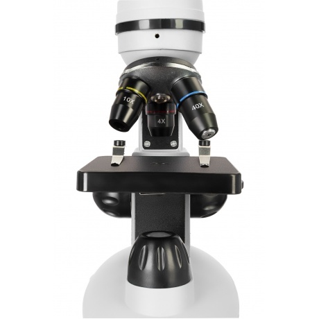 Микроскоп Discovery Nano предназначен для начального уровня исследований готовых микропрепаратов и самостоятельно изготовленных срезов. Можно рассматривать прозрачные, непрозрачные и полупрозрачные образцы на увеличении от 40 до 400 крат. Наблюдения ведутся в светлом поле. Микроскоп оптимально подходит для начинающих пользователей, отличается простым управлением и имеет качественную оптику. В комплектацию также включена познавательная книга о микромире. Монокулярная насадка наклонена под углом в 30°, поэтому микроскоп удобно использовать для длительных наблюдений. Широкопольный окуляр дает увеличение 10 крат, также в комплектацию включены три ахроматических объектива с кратностью 4х, 10х и 40х. 40-кратный объектив имеет пружинящую оправу, защищающую переднюю линзу от механических повреждений. Линзы оптической системы сделаны из стекла, поэтому передаваемая картинка получается четкой и контрастной. Система освещения – два светодиода, расположенных сверху и снизу от предметного столика. Подсветка работает от батареек. Предметный столик дополнен зажимами, которые служат для фиксирования микропрепарата в одном положении. Под столиком находится диск с диафрагмами, который помогает регулировать световой поток. Книга знаний «Невидимый мир» станет прекрасным подспорьем в самом начале работы с микроскопом. Она рассказывает о том, как устроен микроскоп, как выглядят обитатели микромира, какие научные опыты можно провести дома самостоятельно. С ее помощью будет проще освоить управление микроскопом и провести первые исследования.