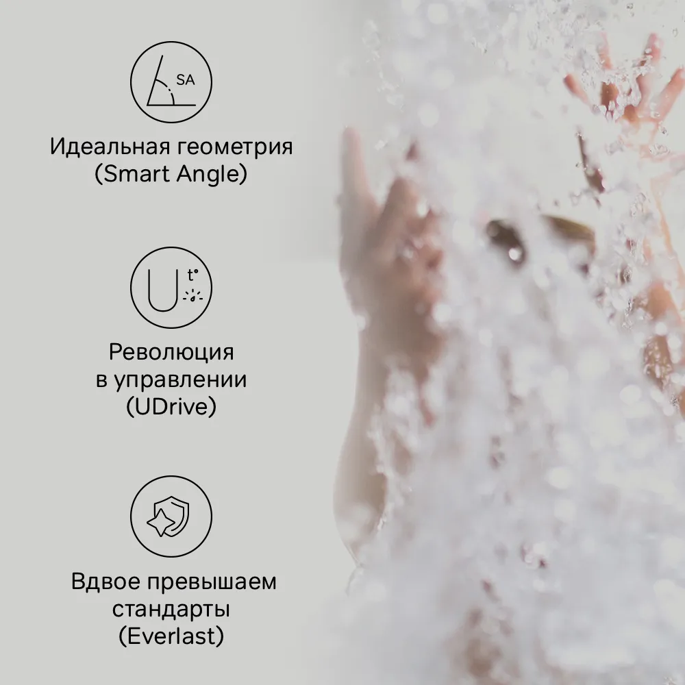 Трендовый дизайн. Специально спроектированный керамический картридж SoftMotion 35 мм обеспечивает оптимальную регулировку температуры, а также позволяет выдерживать любые перепады давления. Функции для удобства использования: оптимальный угол наклона аэратора и насыщение воды воздухом обеспечивает отсутствие брызг.