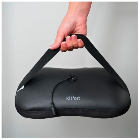 Массажёр-подушка Kitfort KT-2930 поможет избавиться от дискомфорта в шейно-плечевом отделе, который может возникнуть после долгого сидения за компьютером, неудобной позы во время сна или тем, у кого сидячий образ жизни. Особенности:. Всего 1 кнопка. Управление прибором осуществляется одной кнопкой. У массажёра есть функция инфракрасного прогрева, которая улучшает кровообращение и лимфоотток, тем самым повышая эффективность массажа. После 15-минутного сеанса сработает таймер с автоотключением. Удобное крепление к стулу с помощью резинки. В данной модели массажера есть удобное крепление к стулу в виде резинки. Вы можете делать массаж прямо на рабочем месте. Вращение роликов по часовой и против часовой стрелки. Через минуту работы ролики поменяют своё направление вращения и периодически будут его менять на протяжении рабочего цикла. Если вы не хотите ждать одну минуту, то можете нажать на кнопку второй раз второе нажатие меняет направление вращения роликов. Используйте в автомобиле. Помимо блока питания в комплекте к прибору идёт автомобильный адаптер. Используйте массажёр в автомобиле, подключив его к прикуривателю. Это еще не всё. Воздействуя на шею, позвоночник и плечи массажными роликами, массажёр устраняет стресс и затекание мышц. Также устройство можно использовать для массажа поясницы, живота, бедер и стоп. Компактный размер. Благодаря компактному размеру, массажёр легко поместится в спортивную сумку или рюкзак. В машине, дома, в офисе, в спортзале он будет всегда у вас под рукой. У КТ-2930 чехол изготовлен из искусственной кожи его легко можно очистить от загрязнений. Внимание! Имеются противопоказания. Перед применением рекомендуется проконсультироваться с врачом.