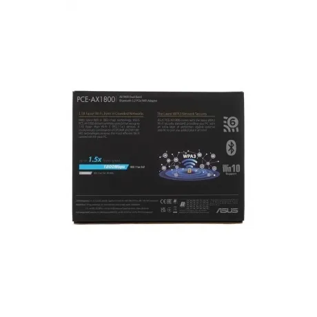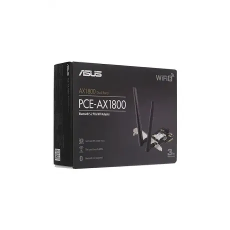 Wi-Fi адаптер + Bluetooth ASUS PCE-AX1800 выпускается в качестве платы расширения с подключением к разъему PCI-E на материнской плате системного блока ПК. Плата получает металлическую планку, за счет которой осуществляется монтаж адаптера в заднюю панель корпуса системного блока. Устройство поддерживает передачу данных как по беспроводной сети Wi-Fi стандартов 6 (802.11ax), 5 (802.11ac) и 4 (802.11n), так и по сети Bluetooth. Для стабильного подключения к точке доступа и к портативным Bluetooth-устройствам на плате закреплены две съемные антенны. Wi-Fi/Bluetooth-адаптер ASUS PCE-AX1800 поддерживает стандарт беспроводной сети Bluetooth 5.2, который отличается низким энергопотреблением подключенных устройств и большим радиусом действия сети. Кабель для подключения платы расширения вошел в комплект поставки.