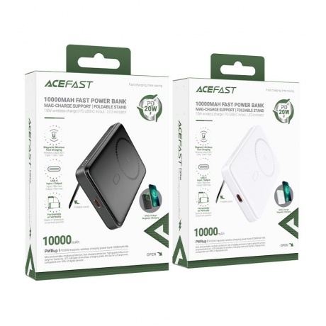 Портативный аккумулятор ACEFAST M6 емкостью 10000 мАч обеспечивает работоспособность смартфона или планшета даже на удалении от розеток. Кроме того, он может заряжать смарт-часы или наушники, и даже делать это ускоренным способом. Благодаря магнитному позиционированию устройство поддерживает беспроводную зарядку. ACEFAST M6 защищен от перегрева и перегрузки. Для проводного соединения в его пластиковом черном корпусе есть разъем USB Type-C. Для вертикальной установки у него также предусмотрена подставка.