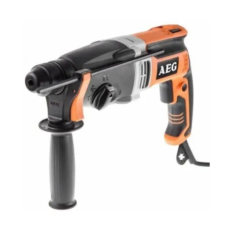 Перфоратор AEG KH 24 IE – производительный максимально удобный в применении трехрежимный инструмент. Он рассчитан на выполнение работ по сверлению, бурению и долблению, поэтому может быть крайне полезным в достаточно большом количестве случаев. Агрегат обладает мощным двигателем и хорошо справляется с различными типами материалов. Диаметр создаваемых с помощью этого устройства АЕГ отверстий в стали составляет 13 мм, в бетоне 24 мм, в дереве 30 мм. Энергия ударов у рассматриваемой техники имеет величину 2.4 Дж.