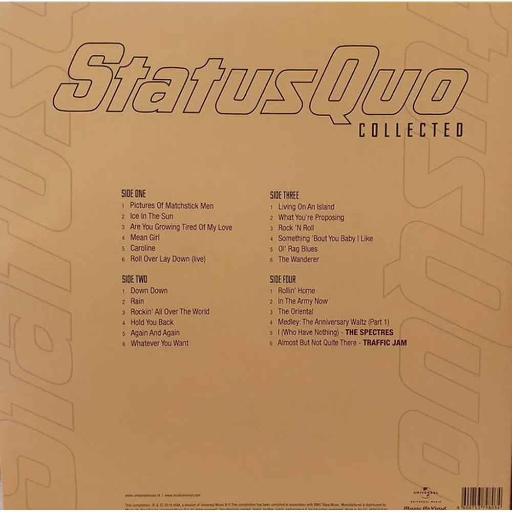 Status Quo - Collected (8719262006195) виниловая пластинка - этот товар вы можете купить в нашем интернет-магазине по цене 4376 руб. Цены, фото и описания представлены на карточке товара. Звоните по телефону 8(800)505-43-75 в Челябинске.