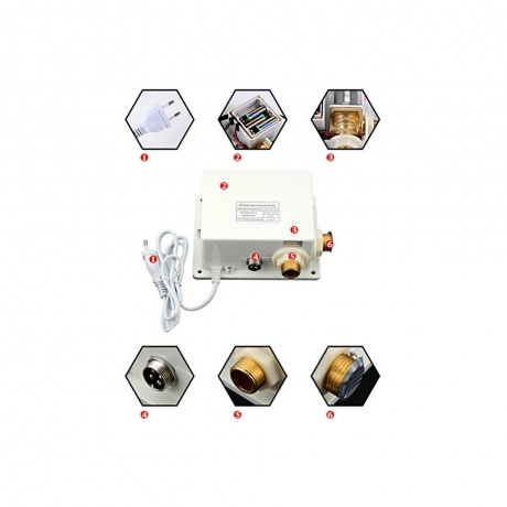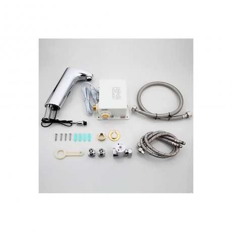 сенсорный смеситель, блок регулировки температуры, аккумулятор гибридного питания (батарейки аа или аккумулятор 220/12v), гибкая подводка - 1 шт. 500 мм и 1 шт. 700 мм