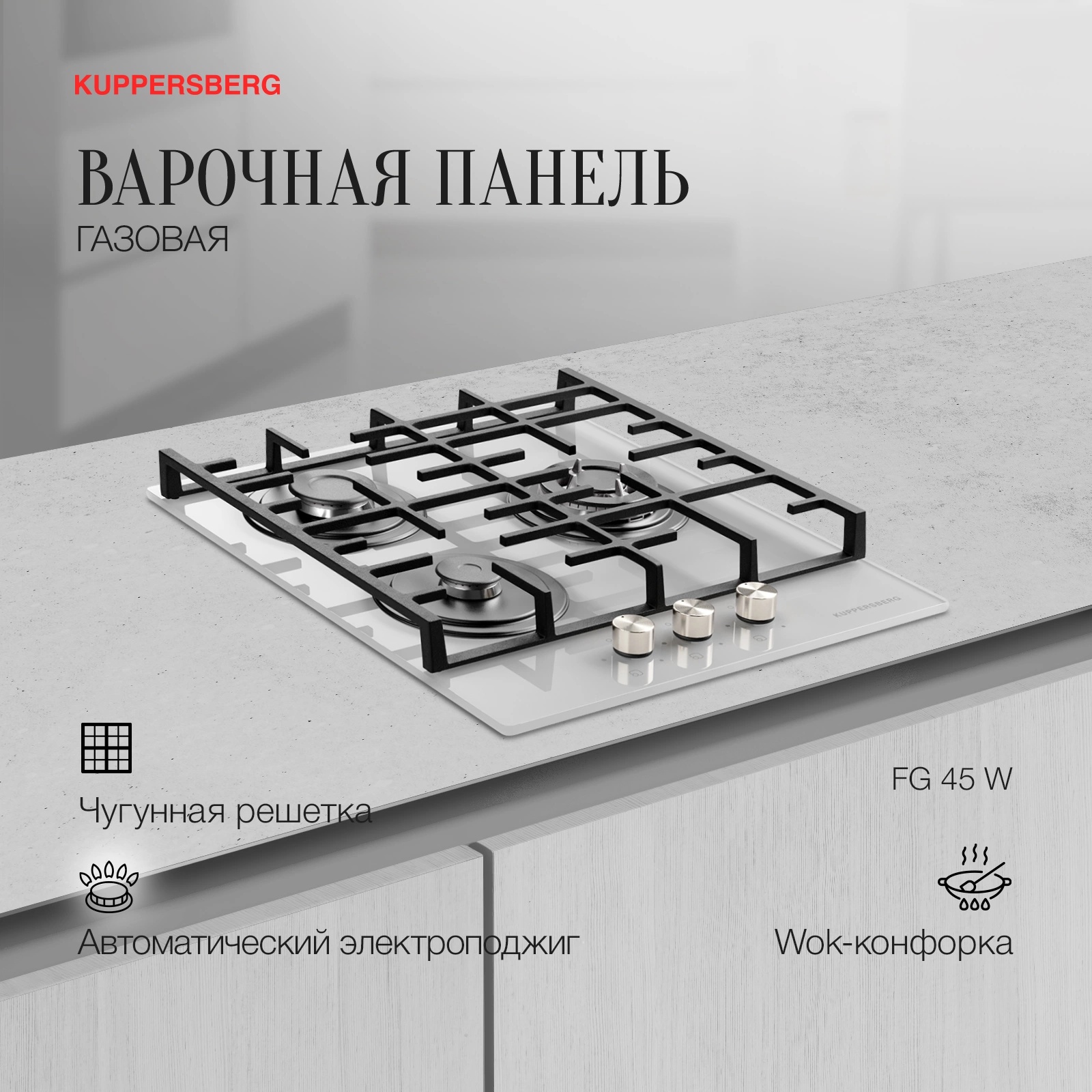 Газовая варочная панель Kuppersberg FG 45 W купить с доставкой в Челябинске