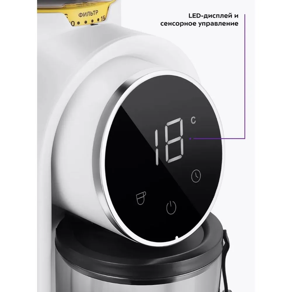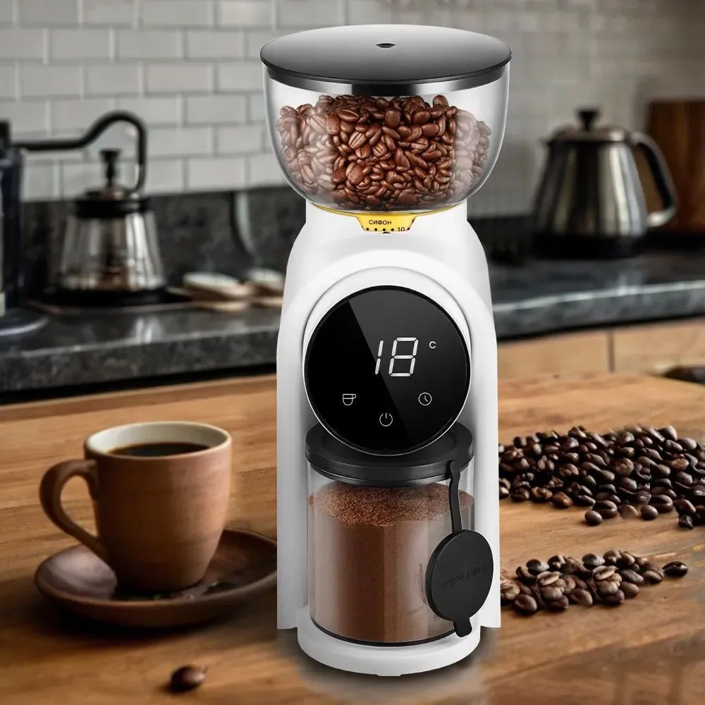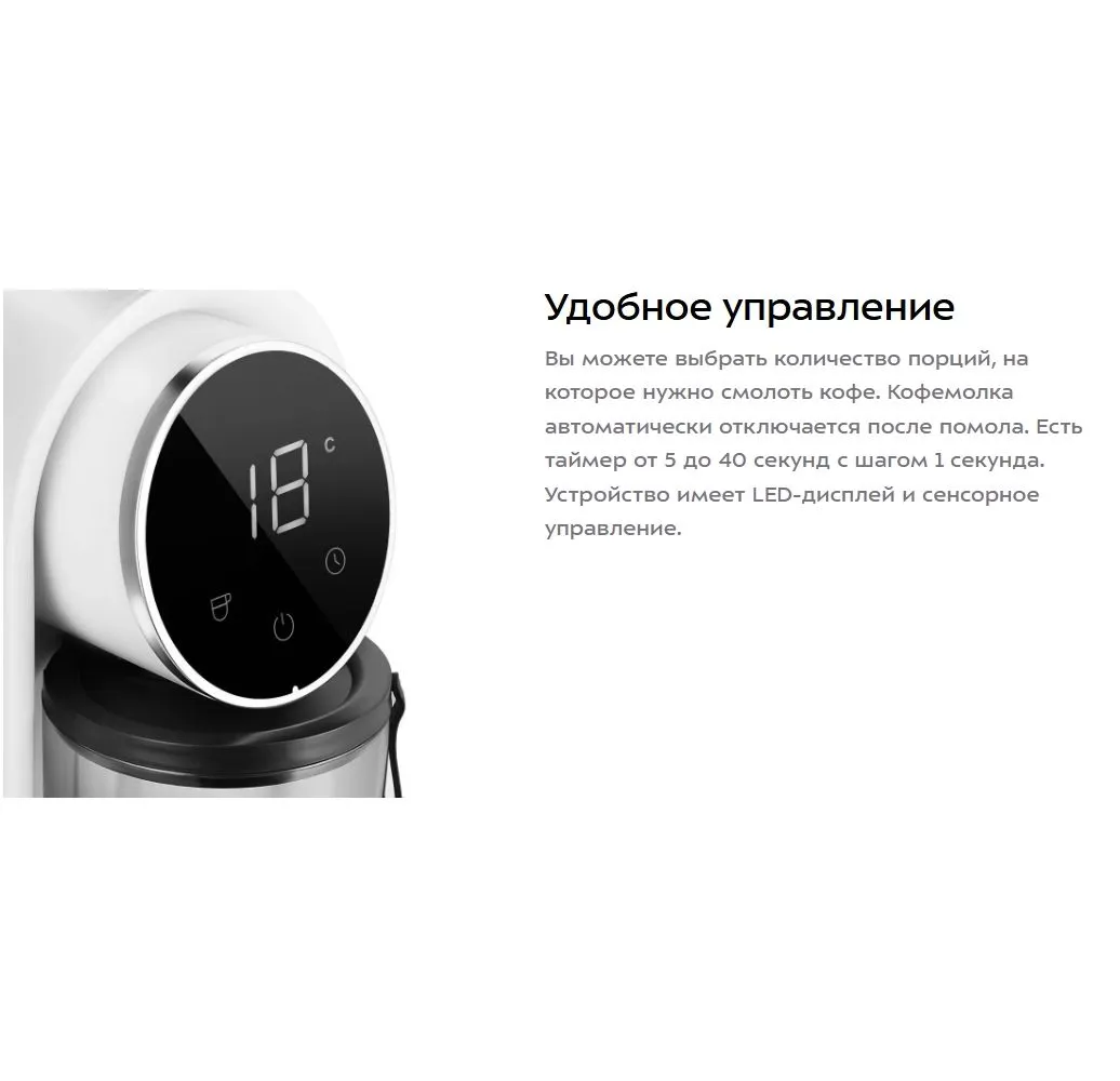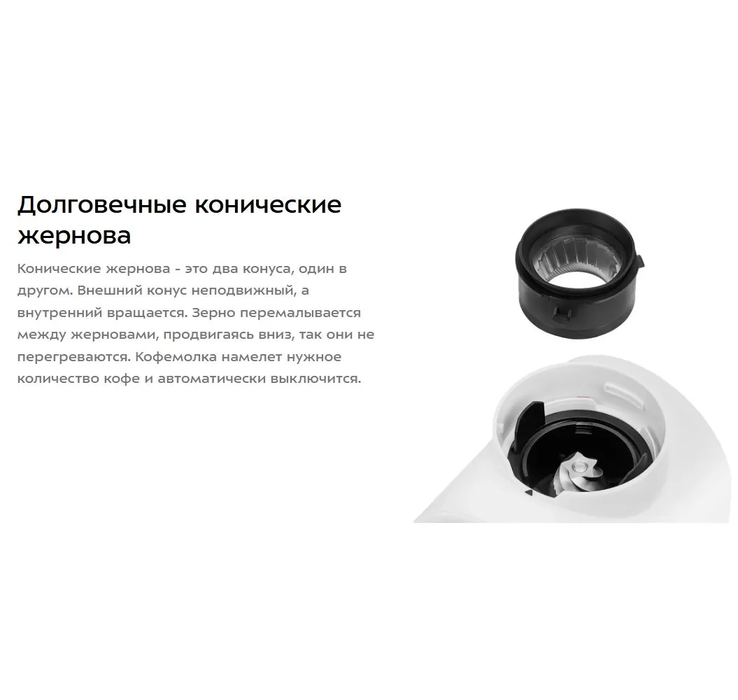 Жерновая кофемолка КТ-7474 предназначена для помола кофейных зерен. Она оснащена коническими жерновами из нержавеющей стали. Зерно, попадая между жерновами, быстро перемалывается, продвигаясь вниз, поэтому кофе не перегревается и не меняет свой вкус. Жерновая кофемолка даёт равномерный помол и позволяет настроить его степень: от мелкого – для эспрессо, до крупного – для френч-пресса. Равномерный помол важен для рожковых кофеварок. При помоле в жерновой кофемолке кофе не перегревается. Вы можете выбрать количество порций, на которое нужно смолоть кофе. Кофемолка автоматически отключается после помола. Есть таймер от 5 до 40 секунд с шагом 1 секунда. Устройство имеет LED-дисплей и сенсорное управление. Конические жернова - это два конуса, один в другом. Внешний конус неподвижный, а внутренний вращается. Зерно перемалывается между жерновами, продвигаясь вниз, так они не перегреваются. Кофемолка намелет нужное количество кофе и автоматически выключится. Контейнеры для молотого кофе ёмкостью 160 г и для зёрен ёмкостью 250 г съёмные. Внешний жернов также съёмный — для удобства очистки. Для чистки жерновов в комплекте идет удобная щёточка.