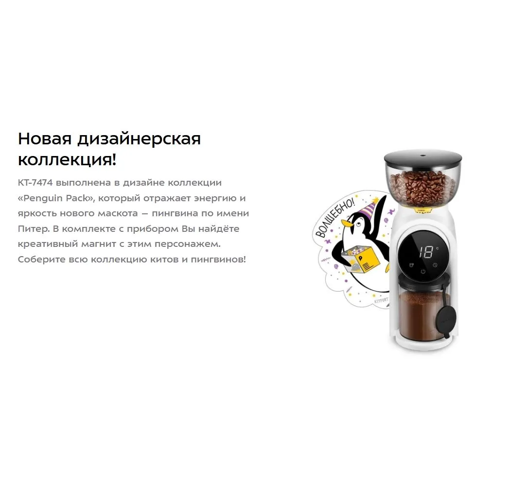Описание товара Кофемолка Kitfort КТ-7474