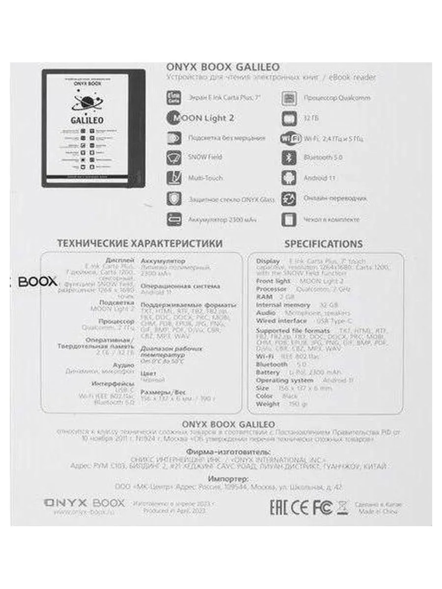 Описание товара Электронная книга Onyx Boox Galileo 2 Black