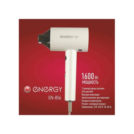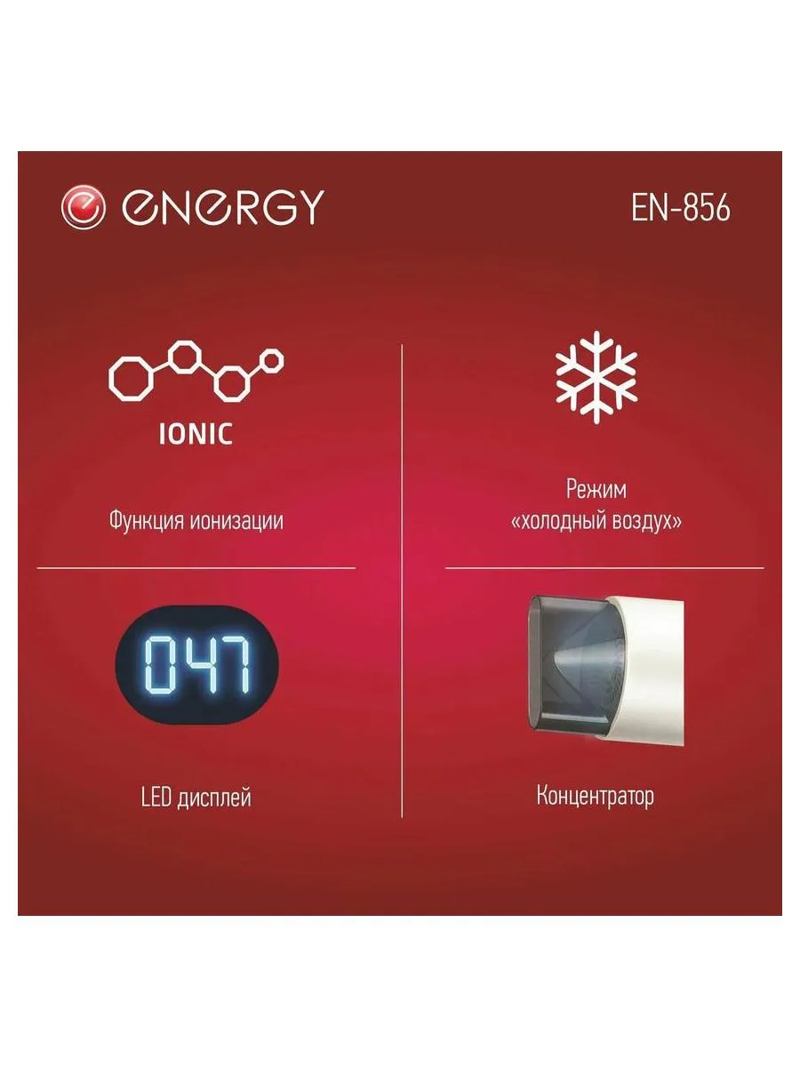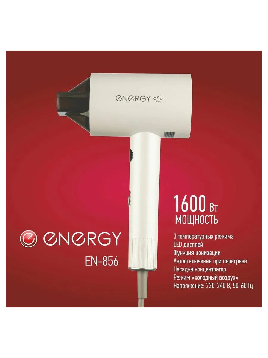 Фен Energy EN-856 - по цене 1750 руб. в Челябинске. Приобрести товар можно в интернет-магазине КотоФото на сайте, либо по телефону 8(800)505-43-75 в Челябинске. Информация о характеристиках и описании указана в карточке товара.