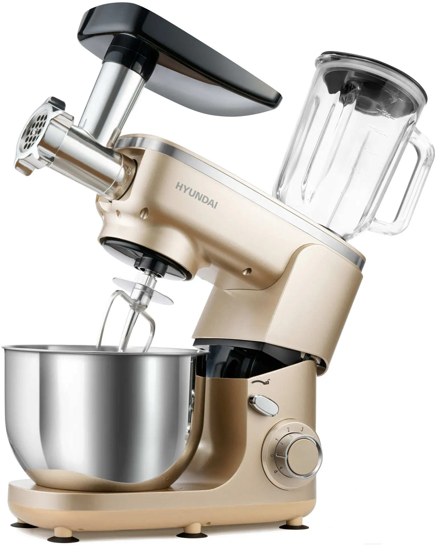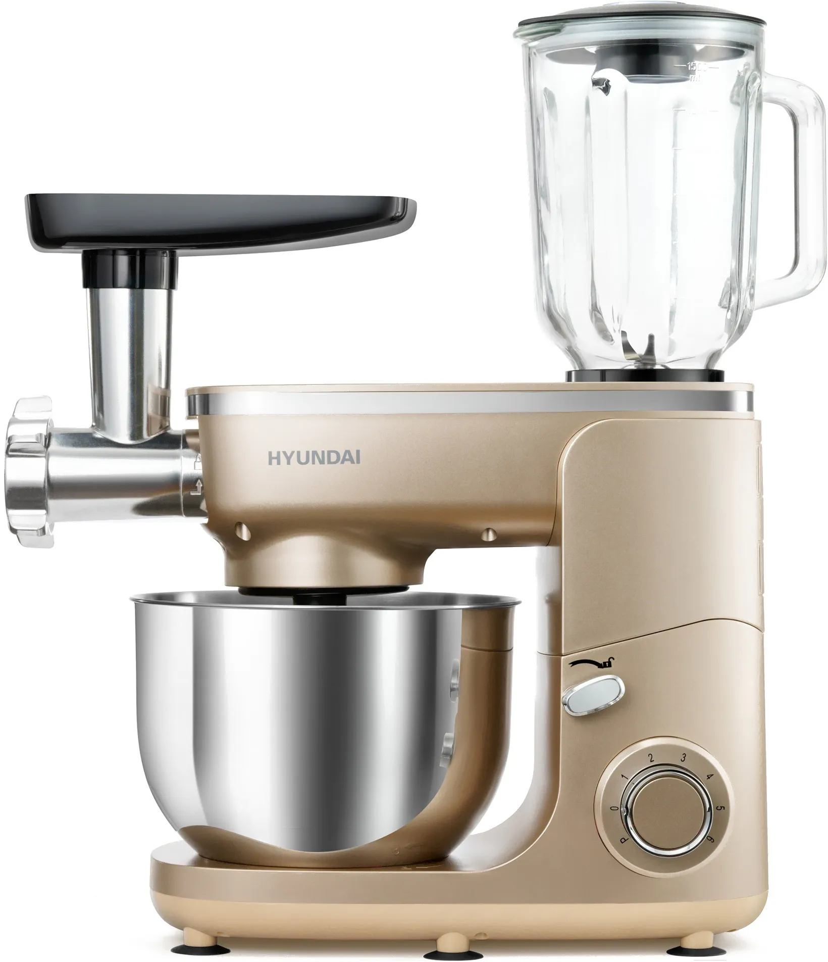 Кухонная машина Hyundai HYMS7451 планетар.вращ. 1400Вт золотистый купить с доставкой в Челябинске