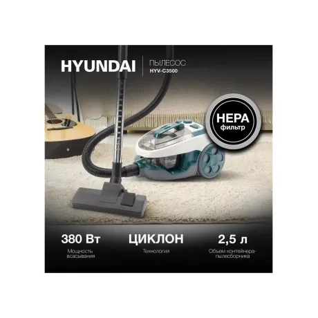 • Пылесос Hyundai HYV-C3500 2220Вт белый/бирюзовый - фото 1