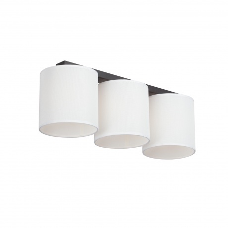 потолочная люстра vitaluce v2882-1/3pl с тремя лампами e27, максимальной мощностью 40 вт каждая, общей мощностью 120 вт. длина светильника 67,5 см, ширина 20 см, высота 24 см. материал основания металл, плафоны текстильные. цвет каркаса чёрный.