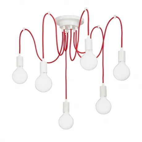 подвесная люстра vitaluce v4238-4/6pl, изготовленная из металла, имеет белый каркас и красные провода, предназначена для использования ламп накаливания с цоколем e27 и максимальной мощностью 60 вт.