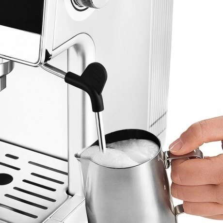 Кофеварка КТ-7418 поможет приготовить кофе эспрессо, капучино или латте, а также множество других видов кофе на ваш вкус. С помощью стимера вы можете приготовить молочную пенку, а также подогреть паром остывший чай или молоко.