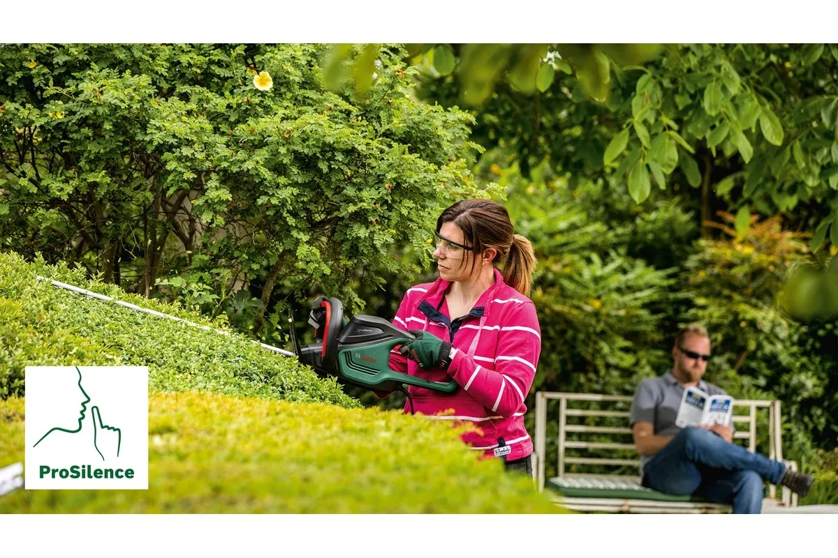 Кусторез Bosch UniversalHedgeCut 50 06008C0501 оптимально подходит для малошумной обработки высоких изгородей. Энергосберегающий двигатель мощностью 480 Вт в звукоизолирующей оболочке ProSilence 91 дБ отличается высокой производительностью при сниженном энергопотреблении и уровнем шума на 80 % ниже ведущих кусторезов Bosch. Полотна длиной 50 см с алмазной шлифовкой и лазерной заточкой легко, быстро и эффективно режут ветви толщиной до 26 мм. Этот кусторез оптимально подходит для обрезки живых изгородей из хвойников, лавра, английского тиса, бука, падуба, граба, лейландии и калины.