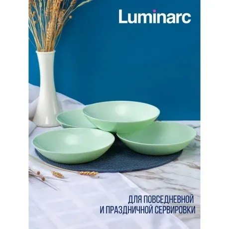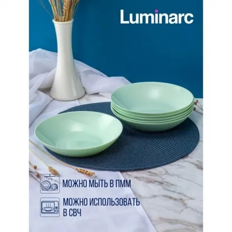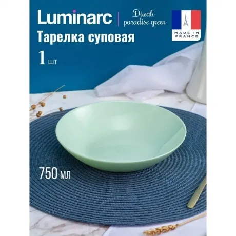 Суповая тарелка LUMINARC ДИВАЛИ представляет собой практичное и стильное решение для сервировки первых блюд. Круглая форма и глубокая конструкция обеспечивают удобство при подаче супов и других жидких блюд. Тарелка изготовлена из высокопрочного стекла, которому не страшны ни удары, ни перепады температур.Так же к плюсам данного материала можно отнести абсолютно гладкую поверхность, препятствующую проникновению бактерий и посторонних запахов в посуду. Подходит для мытья в посудомоечной машине, что облегчает уход за тарелкой.