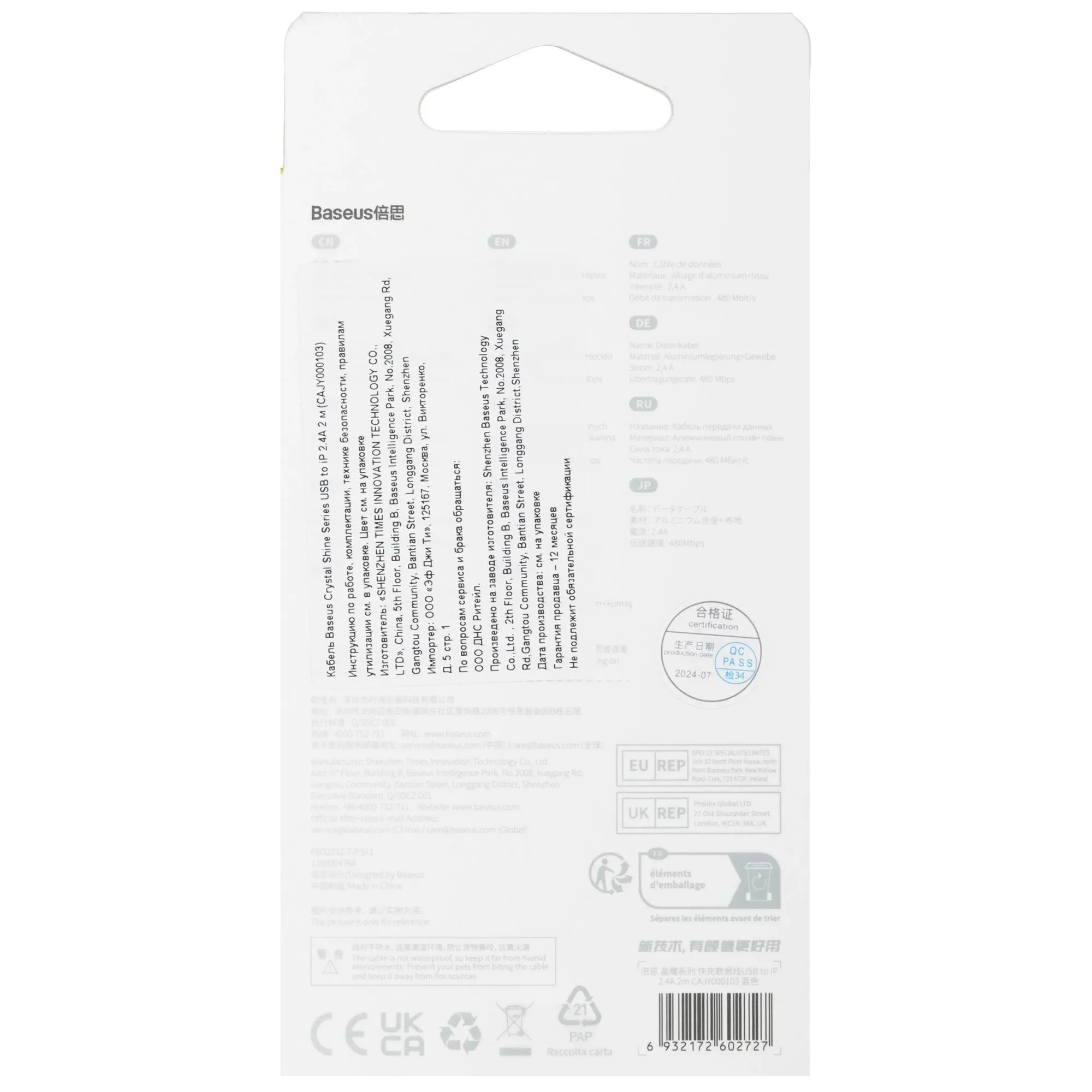 Купить Кабель Baseus CAJY000103 Blue - по цене 474 руб. в Челябинске с доставкой или самовывозом. Заказ можно оформить на нашем сайте kotofoto.ru или по телефону 8(800)505-43-75. Вы можете забрать товар в одном из пунктов самовывоза в Челябинске или оформить доставку на дом в удобное для Вас время.