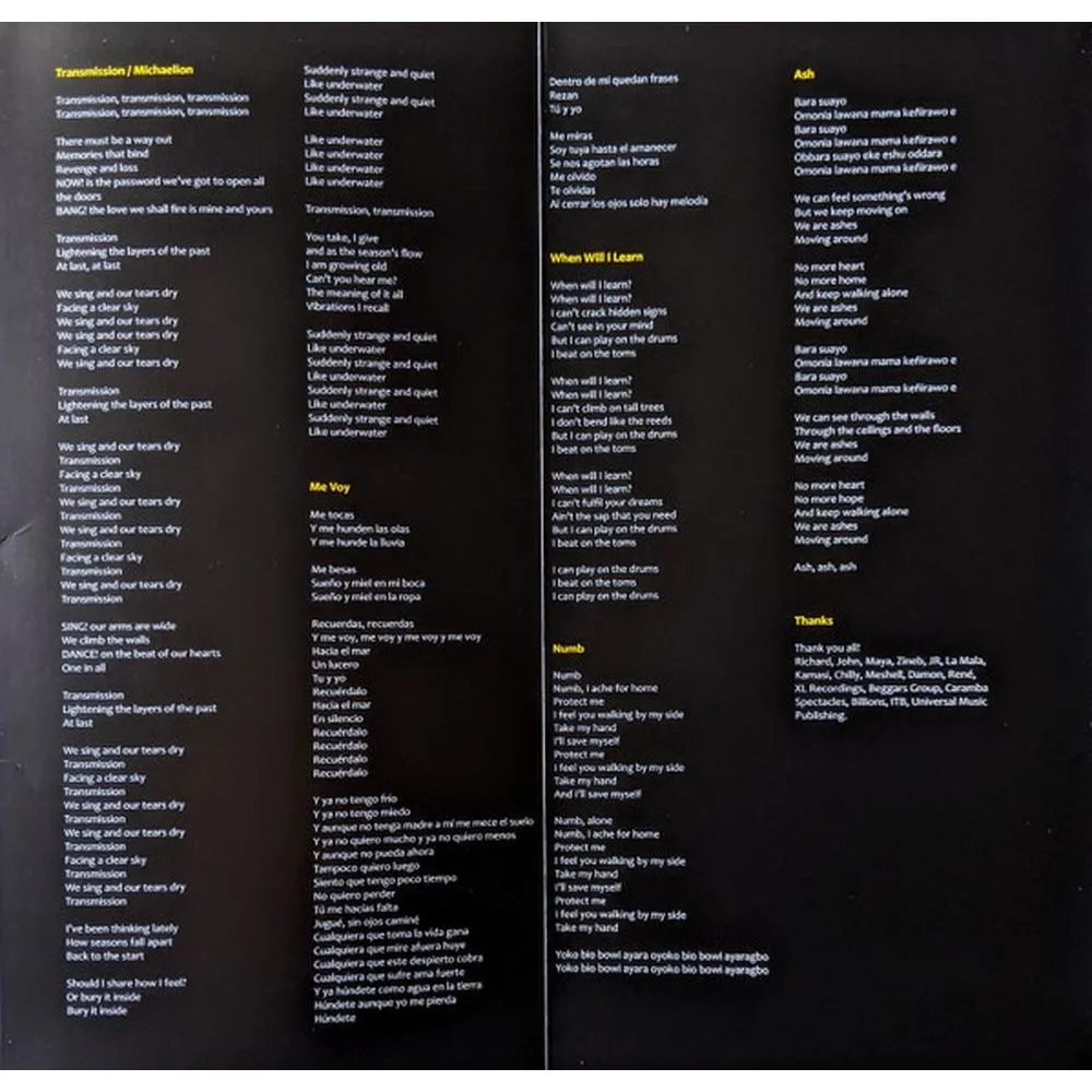 I Carried This For Years, Away Away, Deathless, Like You, No Man Is Big Enough For My Arms, Val?, Waves, Transmission/Michaelion, Me Voy, When Will I Learn, Numb, Ash