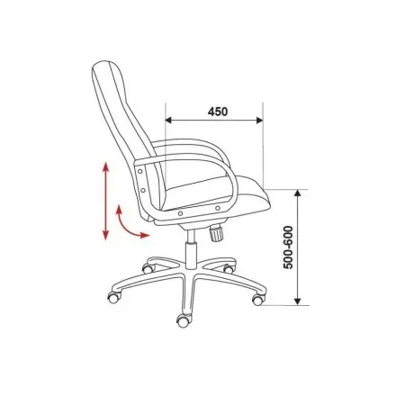 Кресло руководителя с регулировкой высоты, пластиковыми подлокотниками, пластиковой крестовиной и ограничением по весу 181 кг. Отличительной особенностью данной модели является механизм качания с возможностью фиксации в вертикальном положении.
