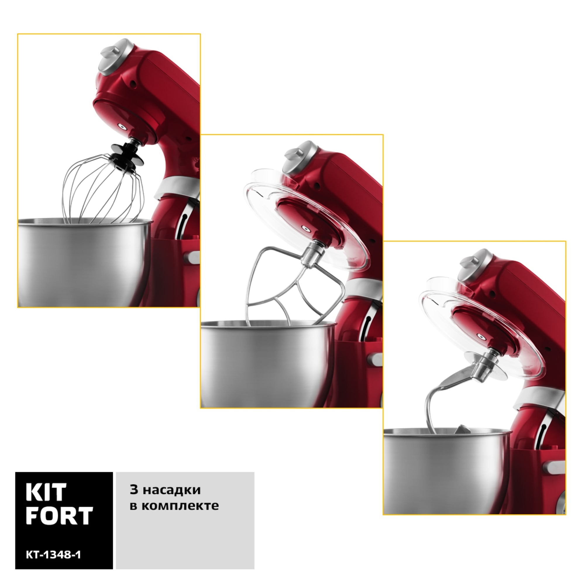 Описание товара Миксер планетарный Kitfort КТ-1348-1 красный