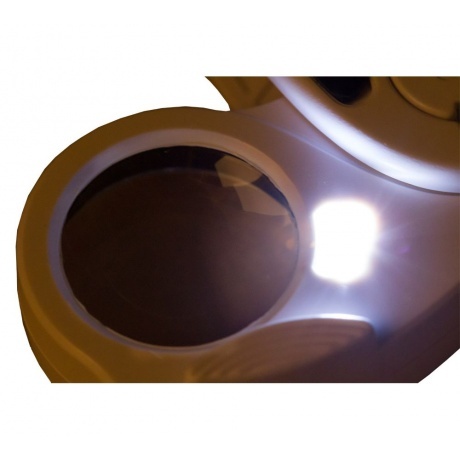 Отличительная особенность складной лупы Levenhuk Zeno Gem M7 – встроенная ультрафиолетовая подсветка, с помощью которой можно проверять подлинность купюр. Эта лупа пригодится тем, кто работает с деньгами и ищет многофункциональный увеличительный прибор для решения широкого круга задач. Лупа имеет 45-кратную линзу и отлично подходит для выявления повреждений на тканях, изучении предметов искусства, чтения мелких текстов. Для работы в условиях плохой освещенности полезна светодиодная подсветка. Она, как и ультрафиолетовая лампочка, расположена в основании линзы и ярко освещает всю рабочую область. Корпус и линза сделаны из пластика и не боятся случайных повреждений. Благодаря этому лупу можно брать с собой в поездки, на встречи с клиентами и за город.