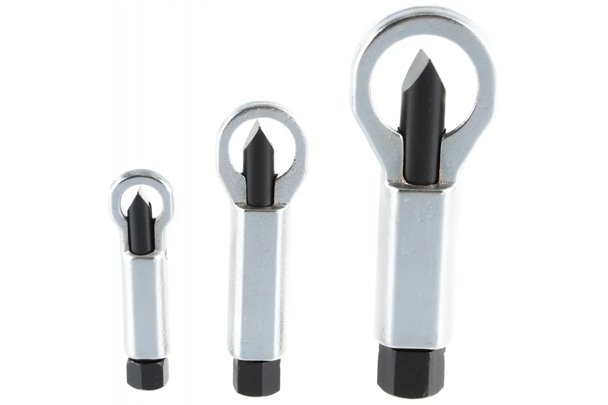 Предназначены для демонтажа резьбовых соединений, если грани гайки или болта сильно деформированы. Изготовылены из высококачественной углеродистой стали. Комплектация: съемник 9–12 мм под ключ 12 мм, съемник 12–16 мм под ключ 14 мм, съемник 16–22 мм под ключ 19 мм.