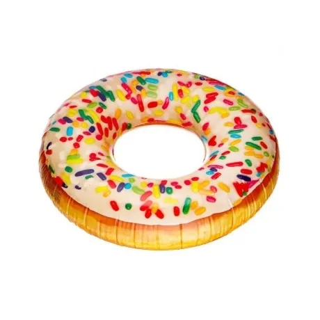 Большой надувной круг для купания, выполненный в форме пончика с глазурью - оригинальная идея, которая порадует всех любителей пляжного отдыха и, конечно, же ценителей сладкого! На таком плавательном круге можно не только качаться на волнах и нежиться под солнцем, но и устраивать отличные фотосессии. Благодаря реалистичному принту пончик смотрится очень вкусно!