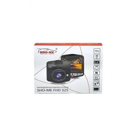 SHO-ME FHD-325 – это недорогой компактный видеорегистратор, поддерживающий HD и Full HD видеозапись. Данная модель отличается невысокой стоимостью и аккуратным классическим дизайном. Основным материалом корпуса служит пластик чёрного цвета с матовой поверхностью. В комплектацию, помимо самого видеорегистратора, включены блок питания, техническое руководство и устройство крепления с хорошей подвижностью.