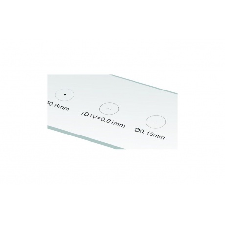 Технические характеристики: Длина шкалы, мм - 1, Число делений шкалы - 100, Цена деления шкалы, мм - 0,01, Диаметр окружностей, мм - 1,5/0,6/0,15/0,07