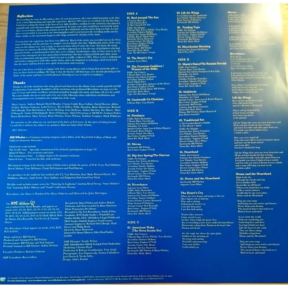 Reel Around the Sun, The Heart's Cry, The Countess Cathleen/Women of the Sidhe, Caoineadh C? Chulainn, Firedance, Shivna, Slip Into Spring/The Harvest, Riverdance, American Wake. The Nova Scotia Set, Lift the Wings, Trading Taps, Macedonian Morning, Marta's Dance - The Russian Dervish, Andaluc?a, Traditional Set, Heartland, Home and the Heartland
